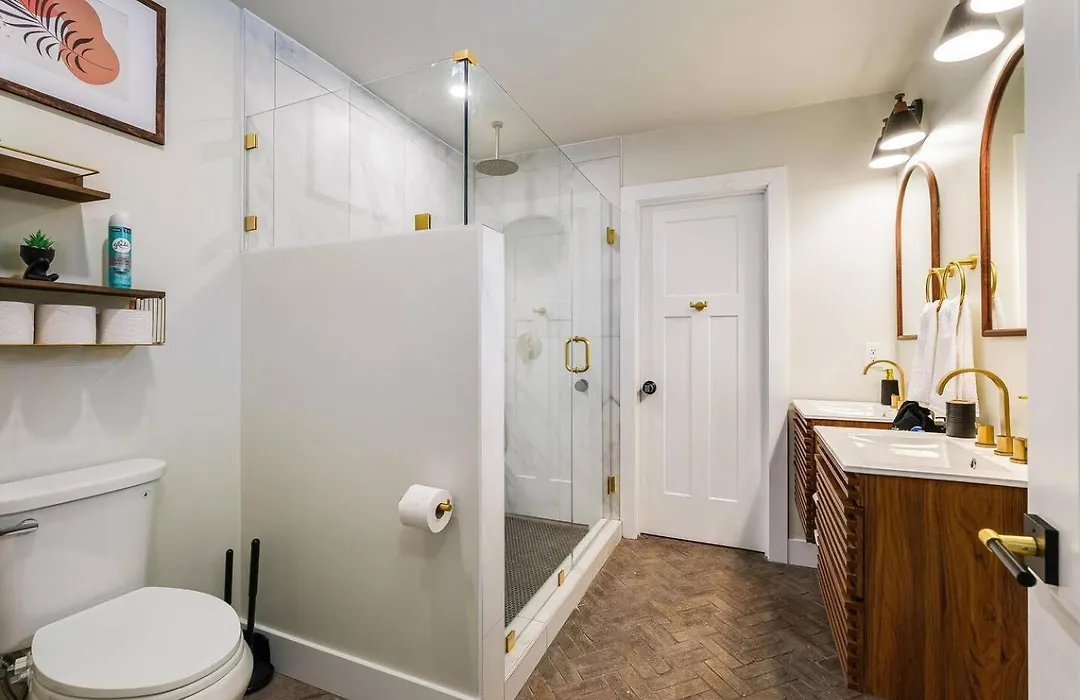 The Scribe & The Season ~ Library ~ Sauna ~ Dogs villa includes a bathroom with a hot tub and a washing machine.